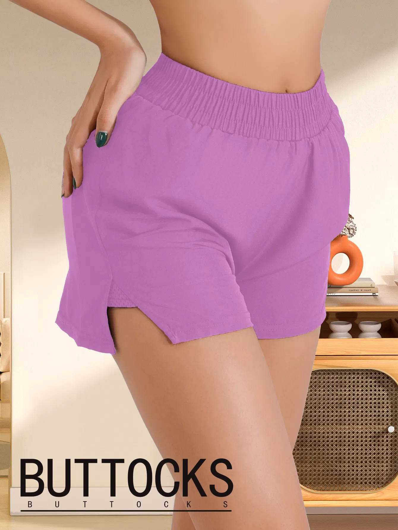 • Women’s Summer Mesh Gym Shorts – Faux Two-Piece, No Flash, Ultra Comfy