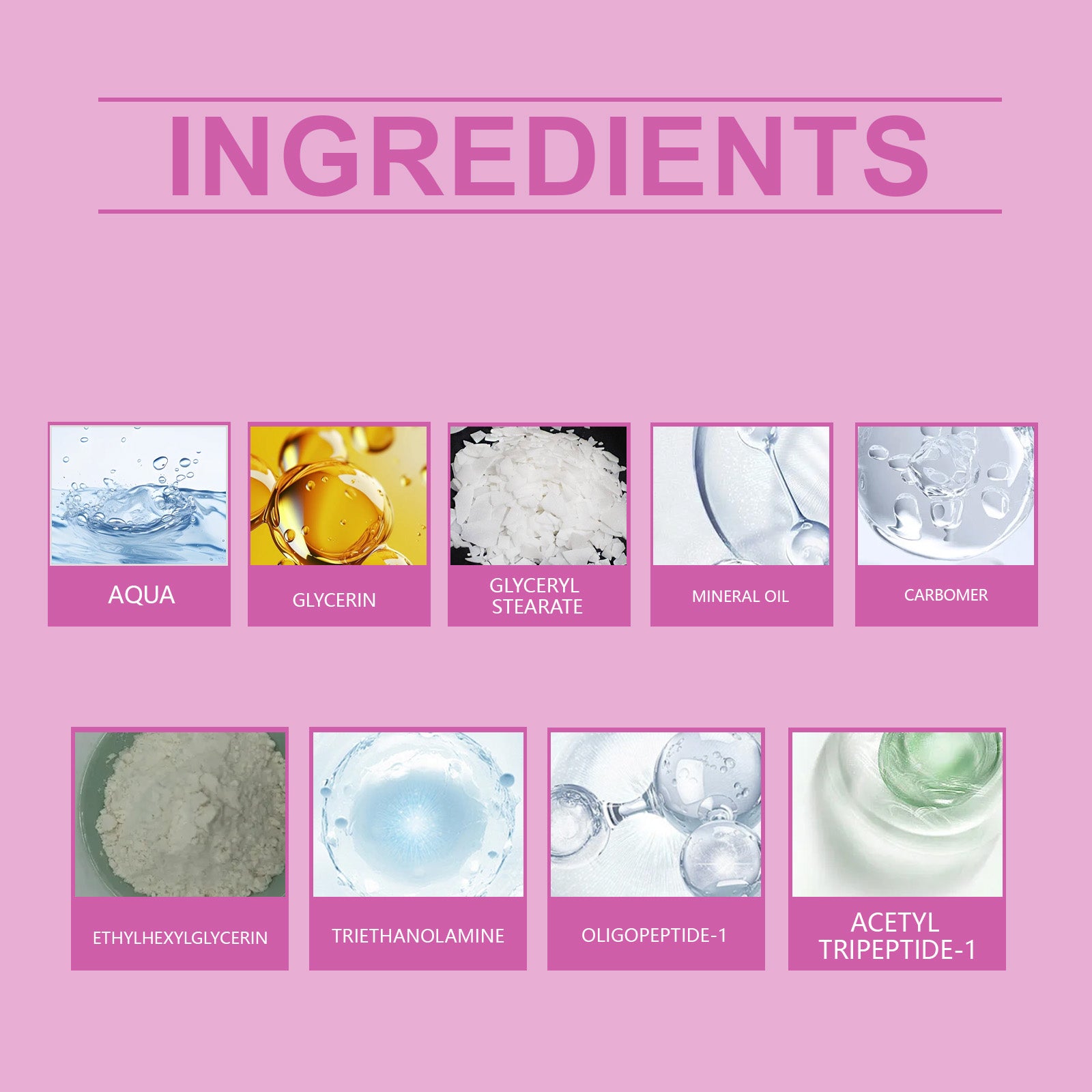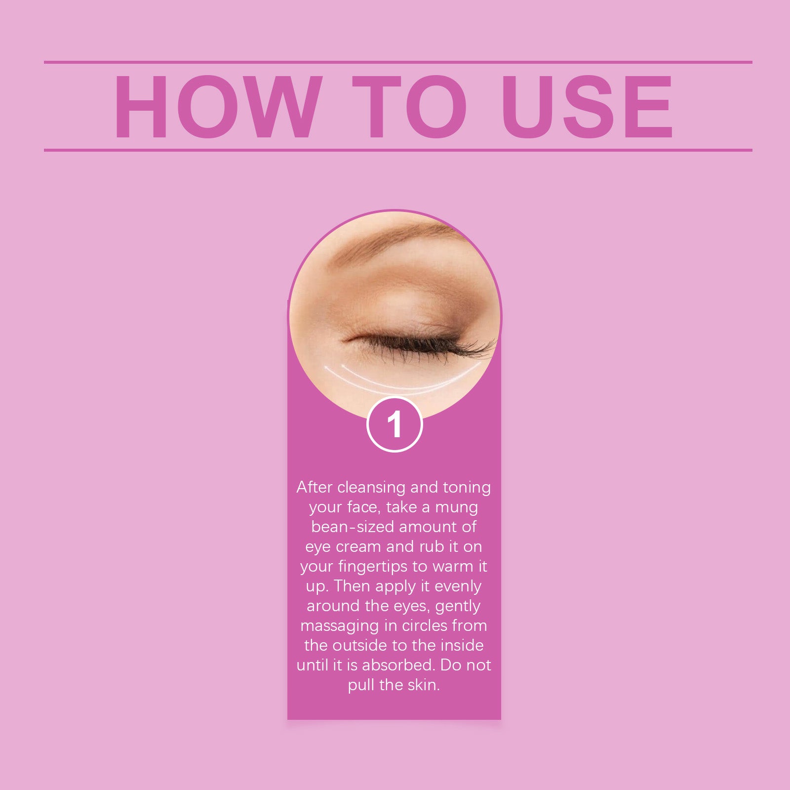 Our elastic moisturizing eye cream contains glycerin, mineral oil. It can promote skin firmness and delay aging. Deeply moisturize and moisturize the skin around the eyes. Its application is simple: after cleaning and conditioning your face, take a mung bean-sized amount of eye cream and warm it with your fingertips. Then apply evenly around the eyes and massage gently from the outside to the inside until completely absorbed. Don't pull on the skin. It also improves the firmness of the skin around the eyes, making your eye area look smoother.
