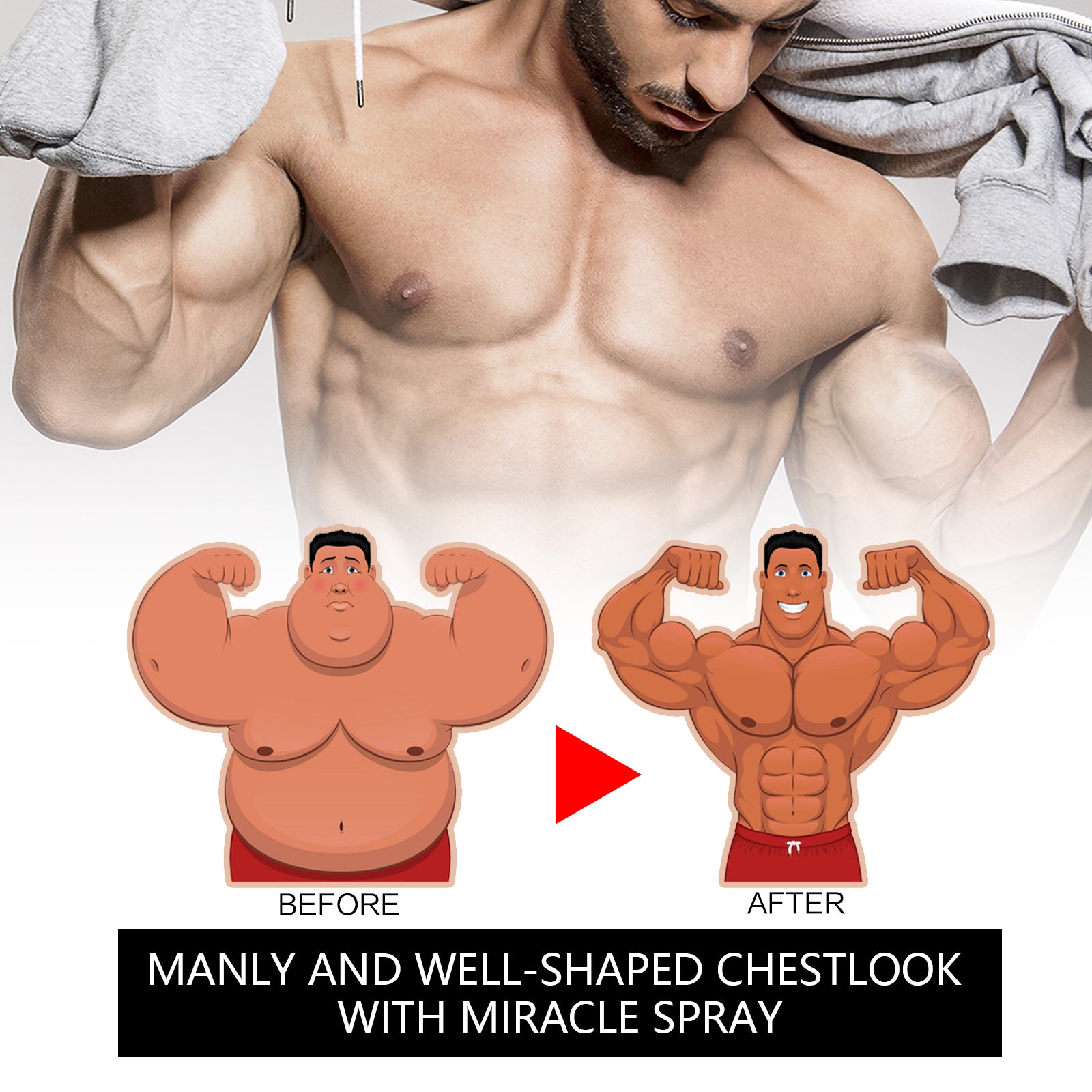 Our Slim firming spray contains coffee extract, collagen, chamomile extract. It strengthens and stimulates chest fat, converting it into pure elastic muscle. Deep into the skin to address unwanted chest fat and immediately smooth, burn chest fat, and convert it into muscle. Helps prevent water retention in the body. It keeps the body hydrated and helps burn cellulite. The method of application is simple: clean and dry the chest area, spray evenly on the skin of the chest 2-3 times, and gently massage until it is absorbed. Promotes the burning of excess fat in the chest and strengthens the pectoral muscles.