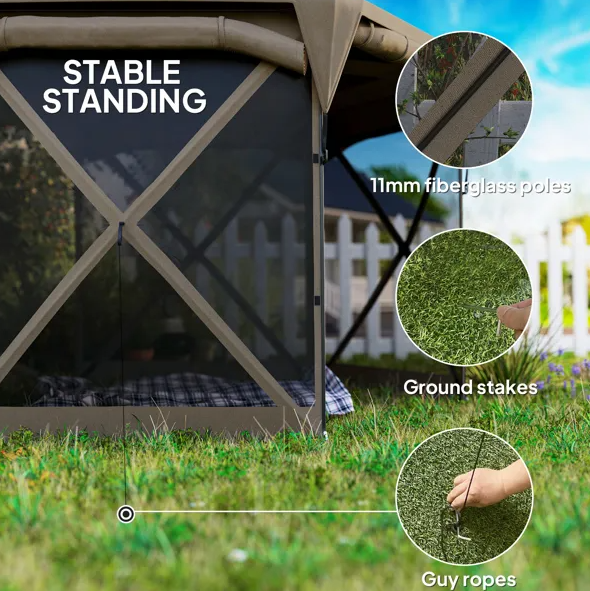 • - Two doors ensure easy access to this gazebo tent from multiple sides